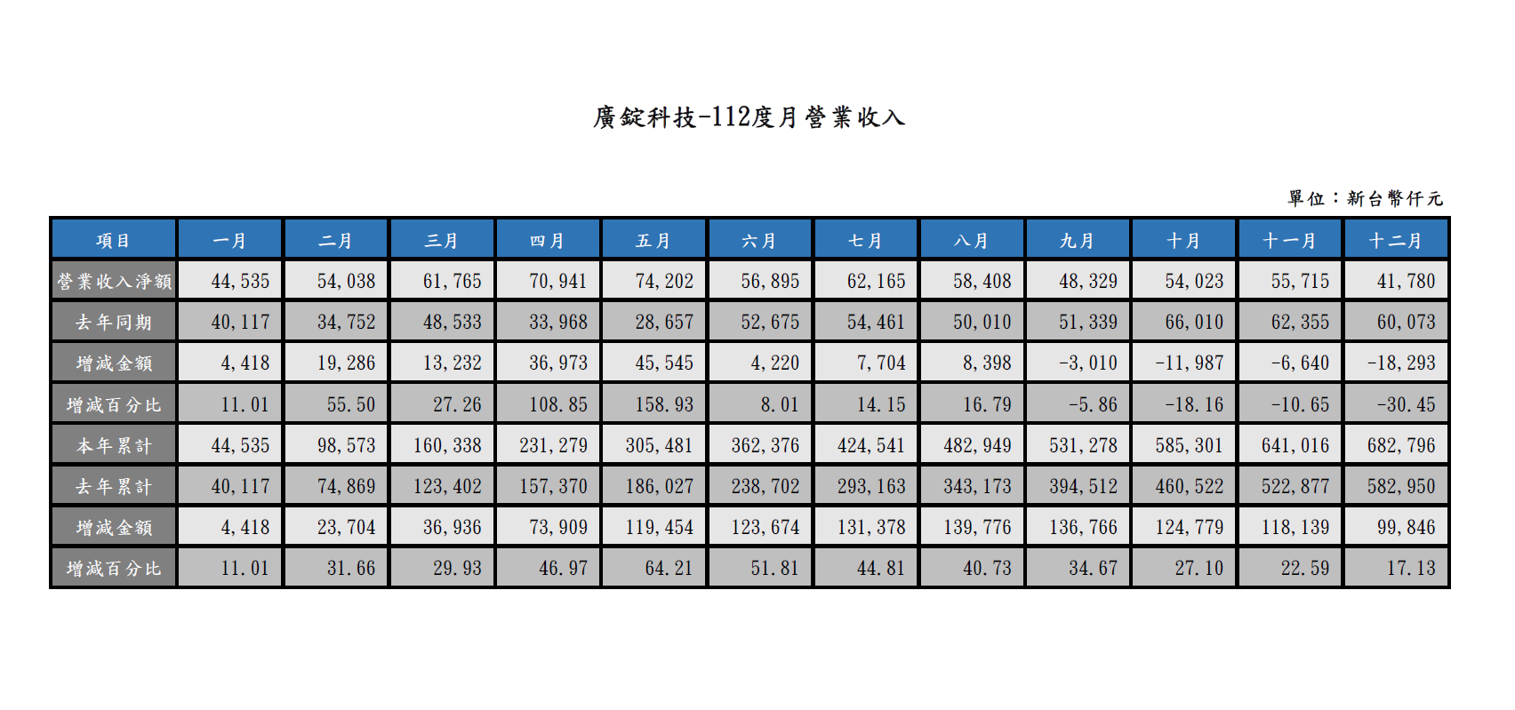 112年度每月營收
